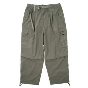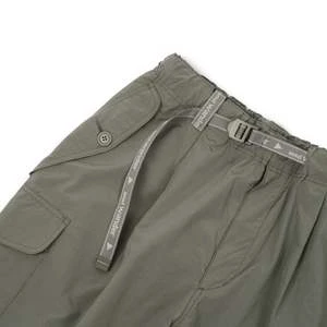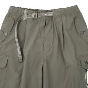 – The Oversized Cargo Pants from And Wander produced in a water repellent fabric with unique elasticity and colour due to the use of a split yarn. The pants come in a loose wide silhouette and feature an integrated belt, two hand pockets, two zippered back pockets, and two zippered cargo pockets provide secure storage, and adjustable elasticated drawcords at the leg openings allow for a personalized fit.