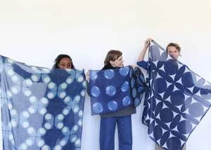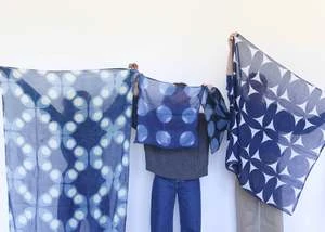 bold graphic design clamp dyed with indigo