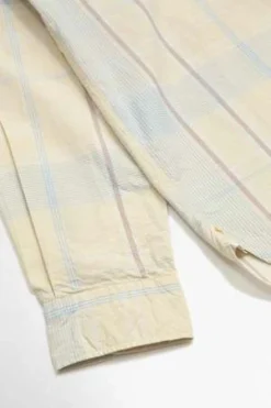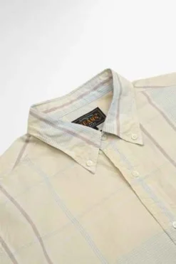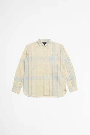 A Beams Plus button-down shirt featuring delicate checks with different design pitches and soft colors. The design is based on American-made button-down shirts produced in the 1960s. The side stitches are narrow (3mm) lockstitches, and the overall number of stitches (between 3cm) is set to 18 in consideration of balance.