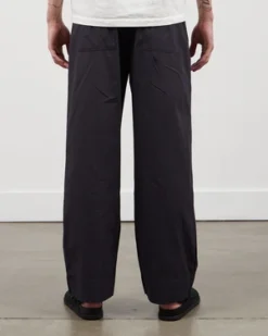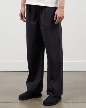The first collaboration between Birkenstock 1774 and Copenhagen-based bedding label Tekla, the the Slate Pants are a cotton poplin trouser with a drawstring waistband, shown here in a washed black grey. Equally suited to daily lounge wear or elevated summer trouser, the pants have a mid rise, elastic waistband, front darts, side slip pockets, rear patch pockets and a mother of pearl button fly. Crafted from 100% organic cotton. Manufactured in Portugal. Model is 192cm and wears a size Medium.