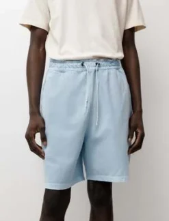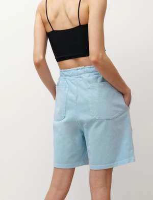 These above-the-knee shorts have a relaxed look and feel thanks to the soft cotton fabric and natural indigo dye. Theyre dried in the sun after dyeing, which gives the fabric an ever-so-subtle washed-out appearance. Complete with two large rear patch pockets and elastic drawstring waistband, their laid-back cut is ready to be enjoyed all day long.