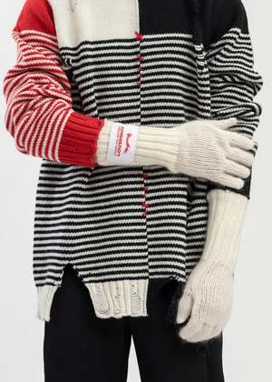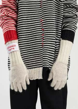 Rib knit nylon- and kid mohair-blend gloves in black. Logo patch at cuff.