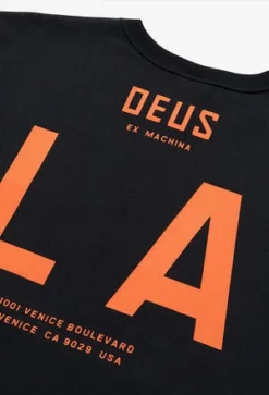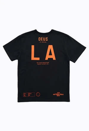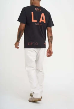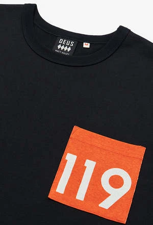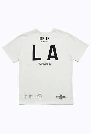 When world-renowned designer Matt Willety blew into the Deus design suite he brought with him a love for numbers and lettering to rival our own, and the LA Address Tee is the perfect example of when a master of the simple elements of design takes the Staple tee with a Deus LA tint brief and runs with it. The LA Address Tee is a box fit tee with a contrast, numbered pocket and back print made from a blend of regular and recycled Cotton Jersey.