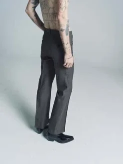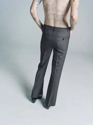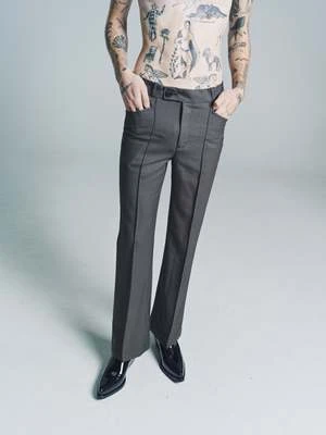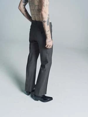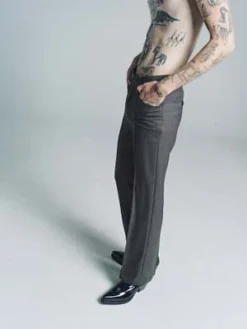Flare Trousers in Brown & Black Houndstooth Wool.