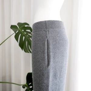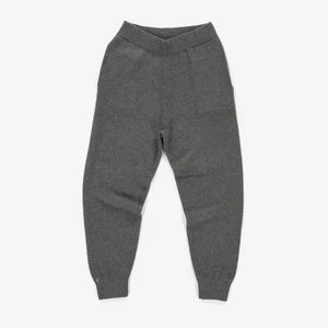 High-waist, slim fit jogging pants with elastic waistband and rib knitted, tight fit cuffs, in grey melange color. It features side pockets. Includes cotton bag for storage and cashmere comb.