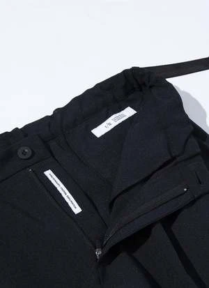 Crafted from a polyester stretch material that mimics the appearance of tropical wool, these bottoms are extremely lightweight. The fabric feels crisp and smooth on the skin, providing excellent breathability due to its medium weight. It offers a natural look similar to materials derived from natural fibers. This fabric has both vertical and horizontal stretch, ensuring a comfortable fit.