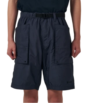 This is a water-repellent and wind-proof short you can rely on during sudden changes in weather. The length is above the knee for improved mobility. 20 denier fabric is a lightweight yet durable ripstop material. The inner side of the material is coated for water-repellency to tolerate moderate rain. Varieties of pockets add practicality and style to this item. From a large cargo-pocket, zipper closure pocket on the right thigh to slotted hip pockets on both sides, these shorts offers store capacity convenient for small valuables. Waist comes with an adjuster for easy tightening. “GREEN MATERIAL” product made with chemical-recycle polyester from a complete recycling system.