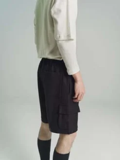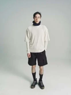The style is based on an italian car- go utility shorts. Like the gr10k x salomon jacket, the panno utility is a sturdy but loose fitting woolen short. Drawstring waist with 3 traditional three pockets and two cargo pockets. The heavy wool soil brown shorts are loose fitting with a low crutch.