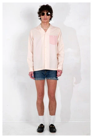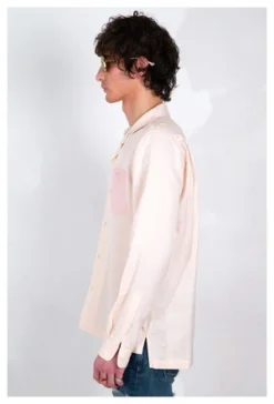 Our Arenas camp collar shirt is given a modern twist in a soft blush pink Japanese cotton Cupra linen twill.