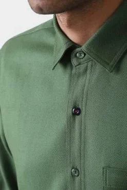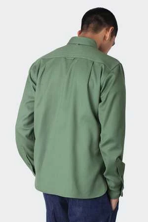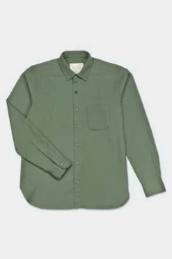 The Rodney Shirt has a standard fit and features a classic collar, front chest pocket, front button placket, and a curved hem.