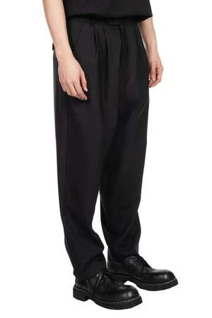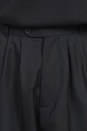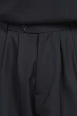 Lownn Long Wide Pants in Black. Mid-rise. Belt loops. Four-pocket styling. Horn buttons. Pleated front