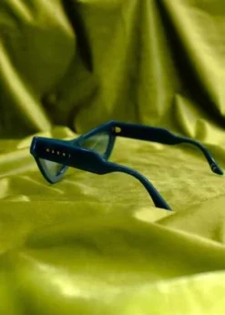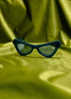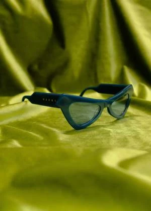 FAIRY POOL sunglasses. Triangular acetate frame. Tinted nylon lenses. Thick temples with gold metal inlay and Marni logo. Interior gold-tone lettering. Handmade in Italy.