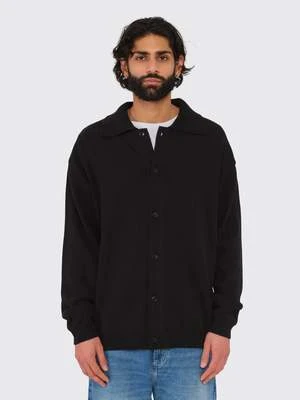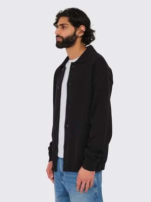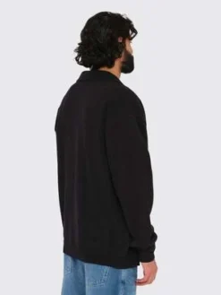 A knitted polo shirt fashioned from a combination of Italian recycled and conventional cotton, offering a dry feel. Notable design features include black buttons, a spread collar, and ribbing at the sleeve cuffs and hem.