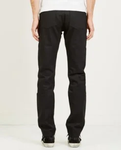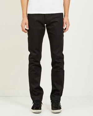 THE WEIRD GUY IN SOLID BLACK SELVEDGE BY NAKED & FAMOUS. 13 OZ BLACK SULFUR DYED JAPANESE SELVEDGE DENIM, WOVEN ON VINTAGE SHUTTLE LOOMS IN A RIGHT HAND TWILL CONSTRUCTION.