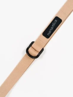 The Nanamica Tech Belt in Beige is a lightweight and simple D-ring webbing belt designed without metal parts for ease of use during travel. It is constructed of a durable CORDURA Polyester fabric, and finished with a woven Nanamica logo patch.