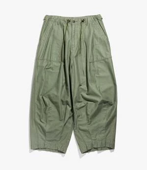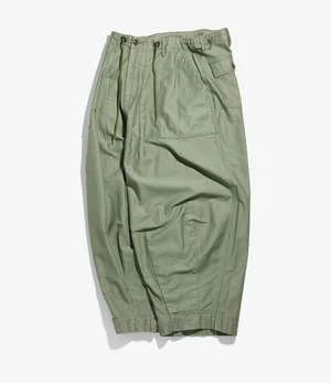 The unique silhouette makes the Needles H.D. Pant a popular item that is in the collection every season. With an exaggerated front created by darts sewn into the waist and hem, the almost 3-dimensional shape feels loose and is comfortable to wear. Features surplus front pockets and an adjustable waist with toggles to lock size.