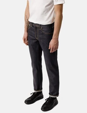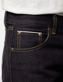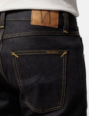 The Gritty Jackson Jeans in the Dry Maze Selvage Indigo Blue colourway from Nudie Jeans are cut in a regular fit with a straight leg, made from organic selvage denim.