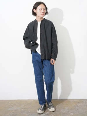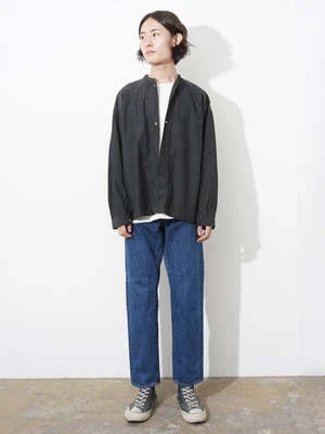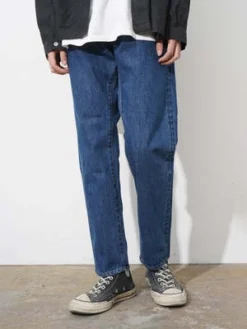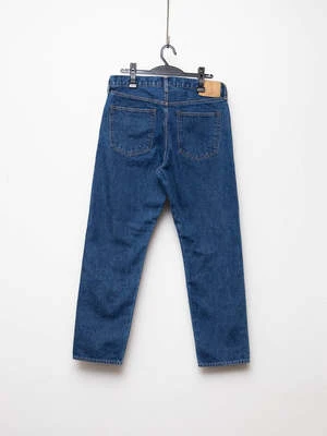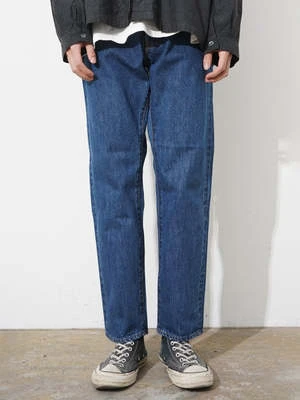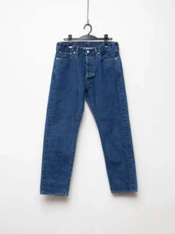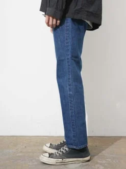 The Ankle Denim Jean from Ordinary Fits is a loose, relaxed fit jean with a beautifully tapered silhouette. Crafted from 14 oz selvedge denim in mid wash, the jeans are made using a mix of uneven threads to create a slightly irregular, rough texture. The jeans have five pockets and are finished with a button fly.