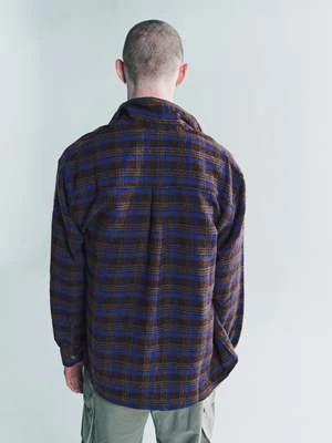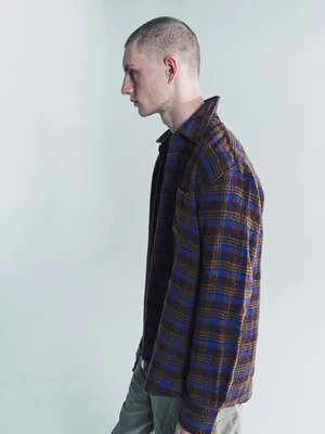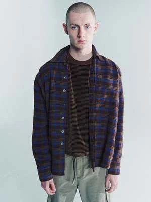 Our Above Shirt in Brown Pankow Check. Produced in a soft Italian polyester, acrylic and wool blend fabric, the mens checked Above shirt has a slightly oversized cut and features a structured check pattern, mother of pearl buttons, a single chest pocket and mitered cuffs. This garment is manufactured using a delicate material with a naturally loose construction. Please handle with care and wash according to washing instructions. Be especially careful with jewelry and other pointed objects that might harm the surface.