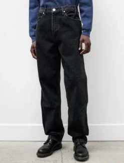 Paa’s classic, relaxed fitting jeans cut from a 14oz cotton denim woven in Okayama in two-toned black denim. The front panels and rear pockets are cut from a black-on-black denim while the rear panels and waistband are cut from a more classically styled black-on-white denim; with wear, each denim will fade with subtle difference and create a truly unique finish over time. Features four pocket styling with square cut rear patch pockets, a zip fly with tack button closure, and seven belt loops. Durably constructed with chain stitched flat felled seams throughout, including a triple stitched inseam, for a hard wearing finish that will last many years to come.