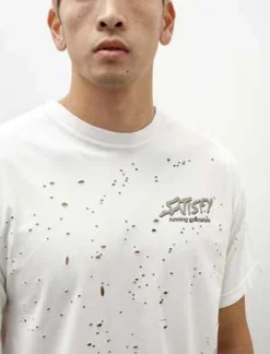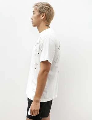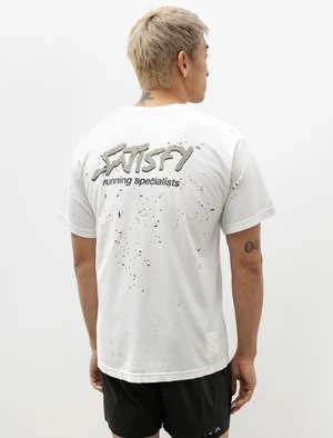 A classic fitting short sleeve t-shirt cut from a lightweight, high density, organic cotton jersey in off white. The dry hand of the fabric offers a natural absorbency that keeps you dry while the “moth-eaten” treatment mapped to the natural contours of the body adds ventilation, increasing air exchange to keep you cool. Features front and back “Running Specialists” graphics and a concealed, internal key / coin pocket at the back right hem. Finished with shoulder-to-shoulder taped seaming at the back neckline to provide a smooth interior surface and reduce abrasion at frequent wear point; reflective logo print at the rear right shoulder for increased visibility.