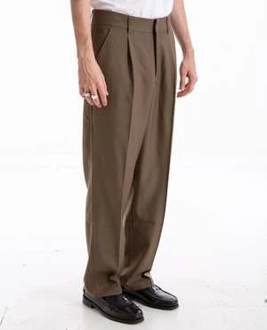 George Suit Trouser in bungee by Saturdays. Equipped with a zip and snap closure, George Suit Trouses feature back welt pockets and slanted sides, as well as a pleated, fitted fabric.