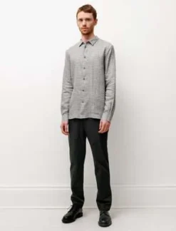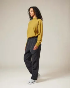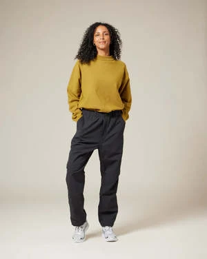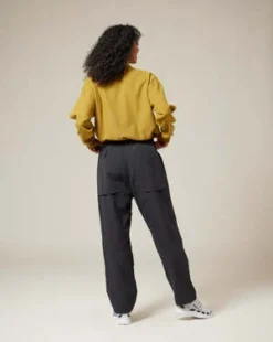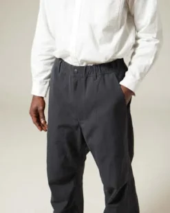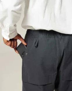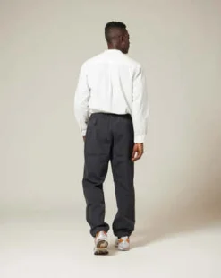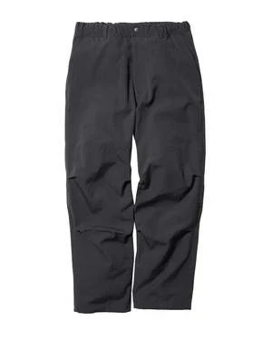 The Takibi Pants are relaxed utility ripstop pants. The fabric is made of aramid and organic cotton that offers water-repellency and fire resistance. The pants feature an elastic waist with button closure, dual slanted pockets, two back button pockets, and a drawcord at the hem.