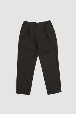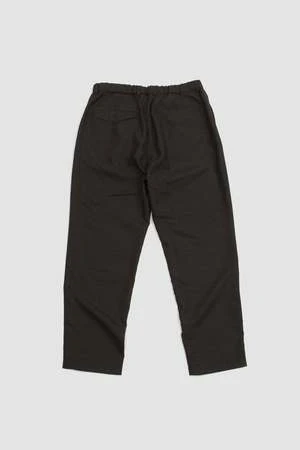 This relaxed wool pants made from brands original wool 84% nylon 16% fabric and mat woven for a fine draping effect. It has long and short tucks in front, elasticated and belt-looped waist. Slightly stretchy and very comfortable. It is slim and tapered.
