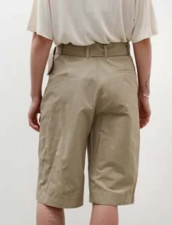 Straight-legged cotton shorts that feature a crisp finish and clean lines for a sharp silhouette. Cut longer, they finish above the knee for a distinguished touch; elevating any look with their smart character. Additional details include a zip fly, side seam pockets and Studio Nicholson’s signature slide buckle belt.