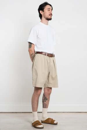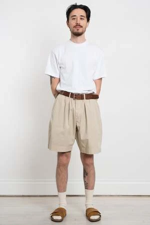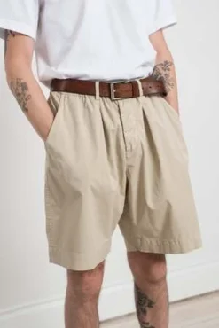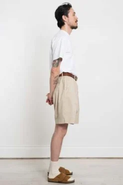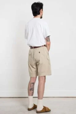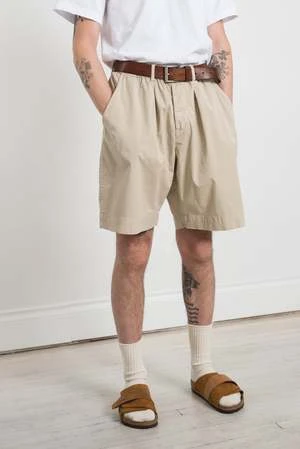 Universal WorksPleated Track Short Paper Touch Cotton – Stone