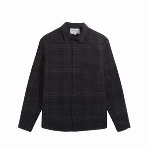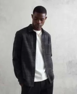 Cut from a heavy weight tonal charcoal check it can be worn alone or over a tee shirt.