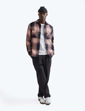 Wax LondonWhiting Overshirt Dusk Check – Navy Blue/Pink